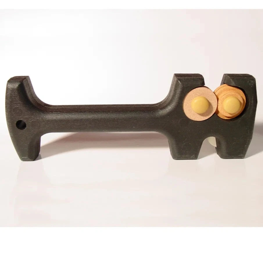 This 2 stage sharpener is designed to provide a sharp and polished edge for your knives. Utilizing Fired Ceramic Stones, it achieves a hollow ground edge. The Tan Stones create a new edge, while the White Stones provide a final polish.