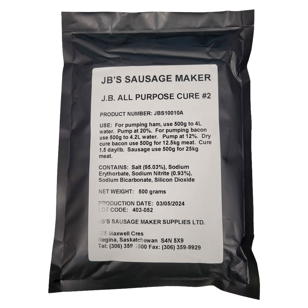 - For Sausage: (F.S. Cure is the generally recommended alternative for sausage.) Mix 500g of curing salt with 25kg (55 lbs) of meat before processing.
