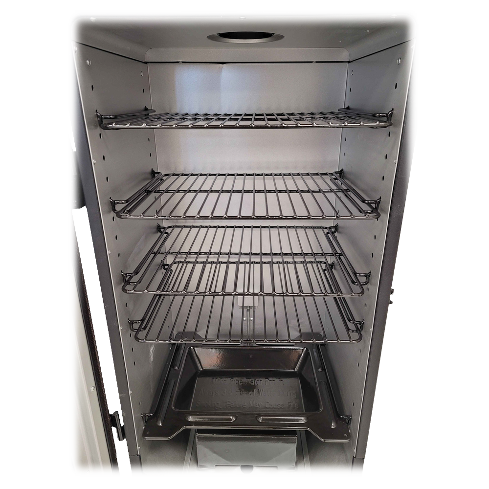 Take your outdoor cooking to the next level with the Pit Boss Copperhead 3-Series Vertical Pellet Smoker. Designed for efficiency and precision, this smoker is perfect for low-and-slow smoking or high-temperature roasting. With 721 square inches of cooking space across four porcelain-coated racks, it’s versatile enough to handle anything from brisket and ribs to veggies and baked goods.