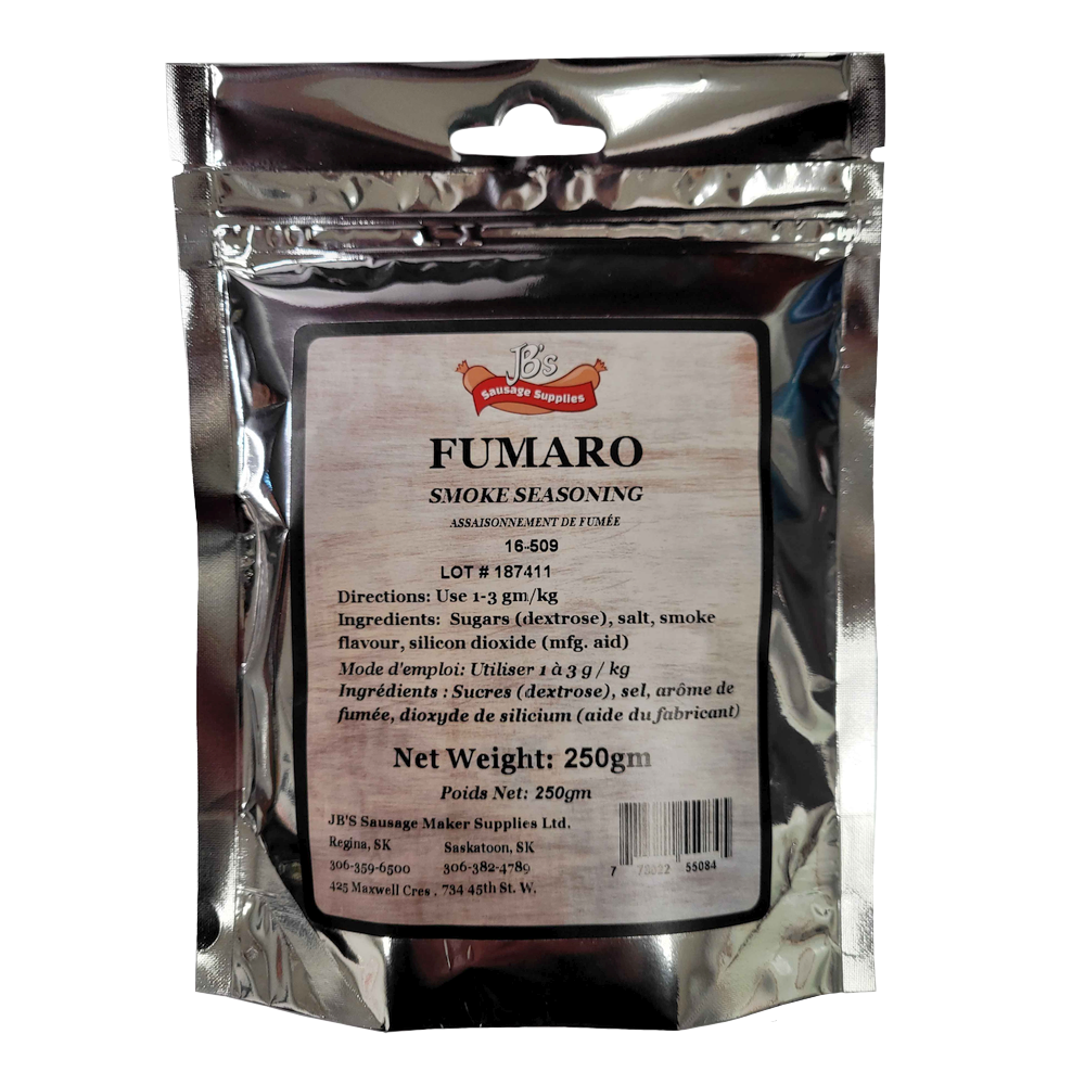 Fumaro smoke seasoning is a precise combination of natural smoke flavor extracted onto dextrose and salt as a carrier, providing a rich hickory taste.