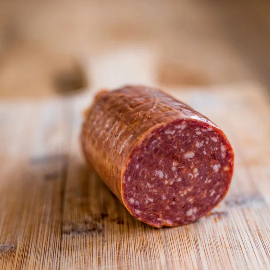 The Hickory Beef Salami S/B/C seasoning blend offers a rich, smoky flavor with a hint of mustard and a touch of sweetness from corn syrup solids. Perfect for creating 25 lbs (11.34 kg) of smoked or cooked salami, this blend gives your sausage a deliciously savory depth and satisfying texture, ideal for traditional and homemade salami lovers.