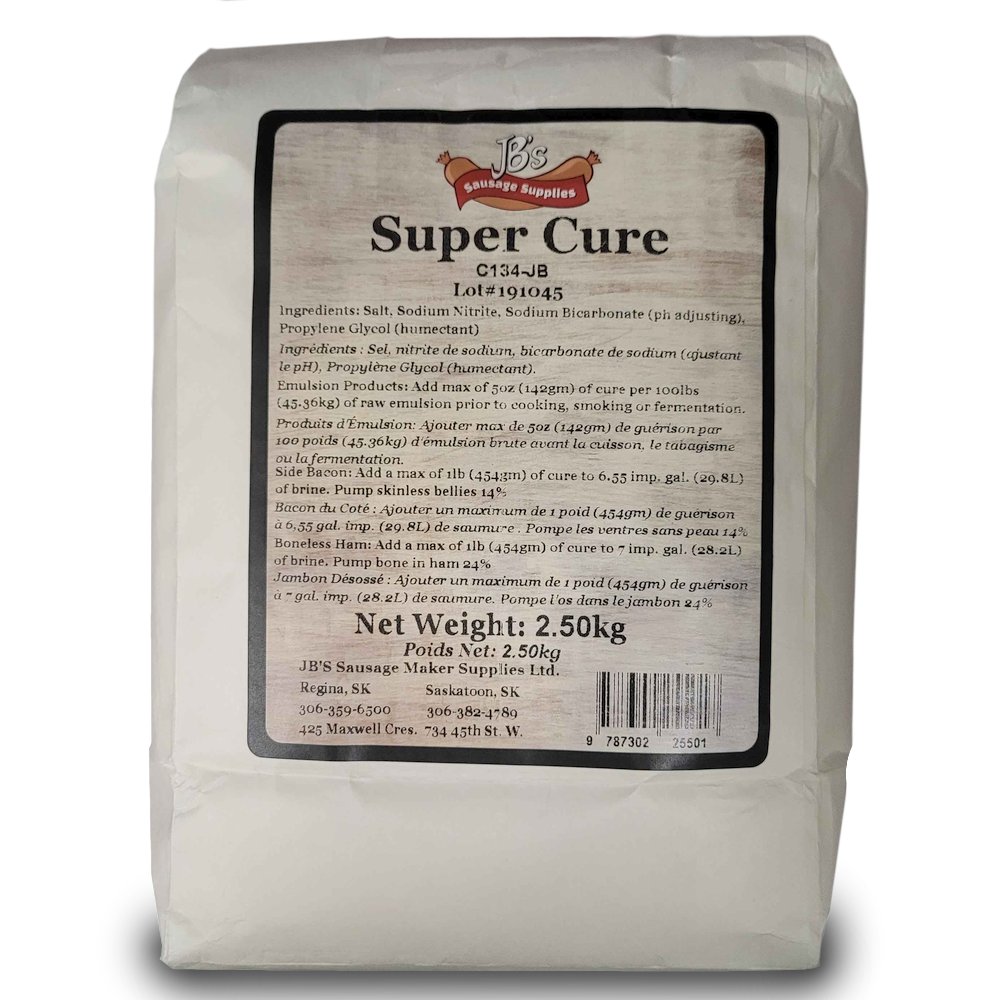 Emulsion Products: Add max. 454gm (1lb) Supercure to 45.36 kg (100 lbs) raw emulsion prior to cooking, smoking or fermentation.